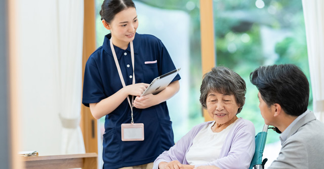 - 介護士は、利用される方が日常生活で自立を目指すために支援するためだけでなく、その家族との連携性を保ちつつも、医療行為においては看護師さんとの連携性も高めていくことも重要な位置付けとなっています。