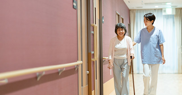 足腰や股関節などに疼痛があったり、筋力の衰えや均衛な感覚の低下、麻痺などで歩くことが困難な障害がある方に適しています。さらに、下半身の筋力が衰え転倒しやすい高齢者など、自分で歩く動作が心配な方をサポートするのが福祉用具の歩行器です。